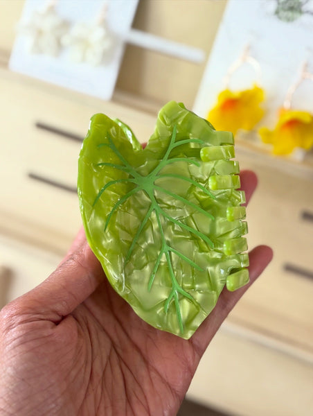 An Aliʻiloa Creations EXCLUSIVE, this Kalo Leaf was hand drawn, crafted, & designed by us exclusively. A unique, cultural, and symbolic addition to your hair style, our Kalo Leaf Hair Claw Clip is perfect for on the go, to the beach, in the classroom, out to the mall, or running everyday errands! 🤙🏽